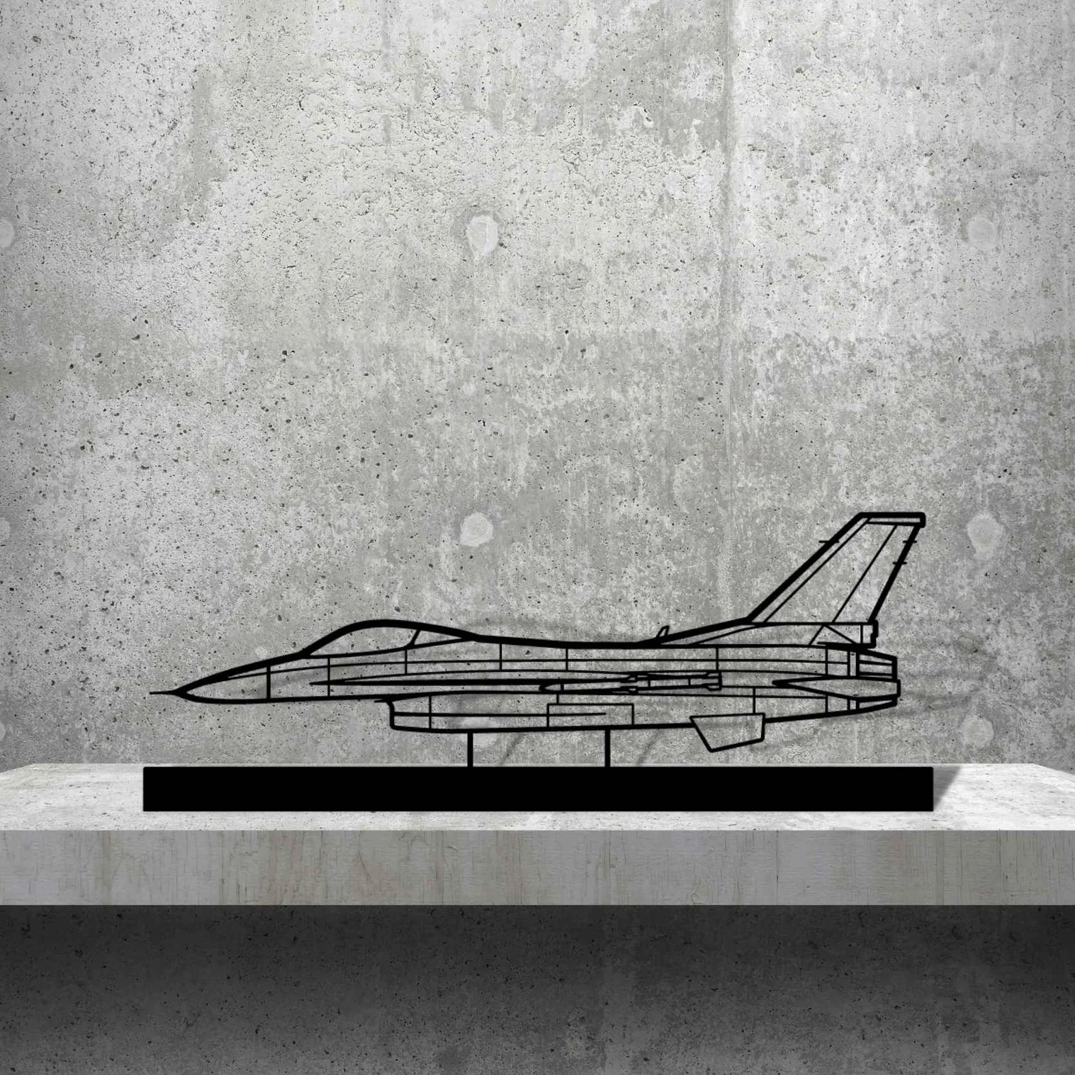 F-16C Block 50 Silhouette Metal Art Stand will give your hangar, office or room a unique look that will catch the attention of any aviation enthusiast and will add a subtle touch to your interior design.