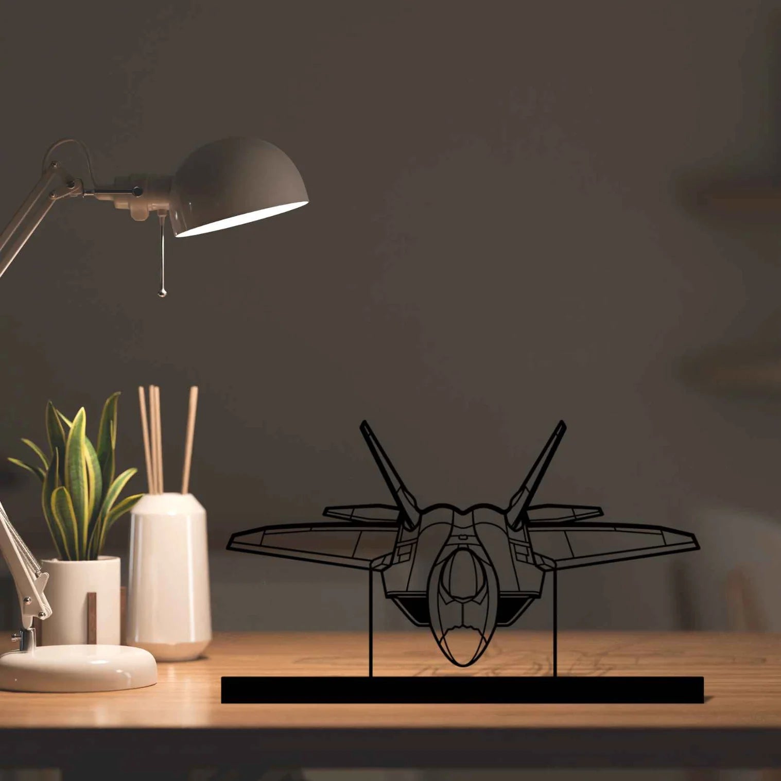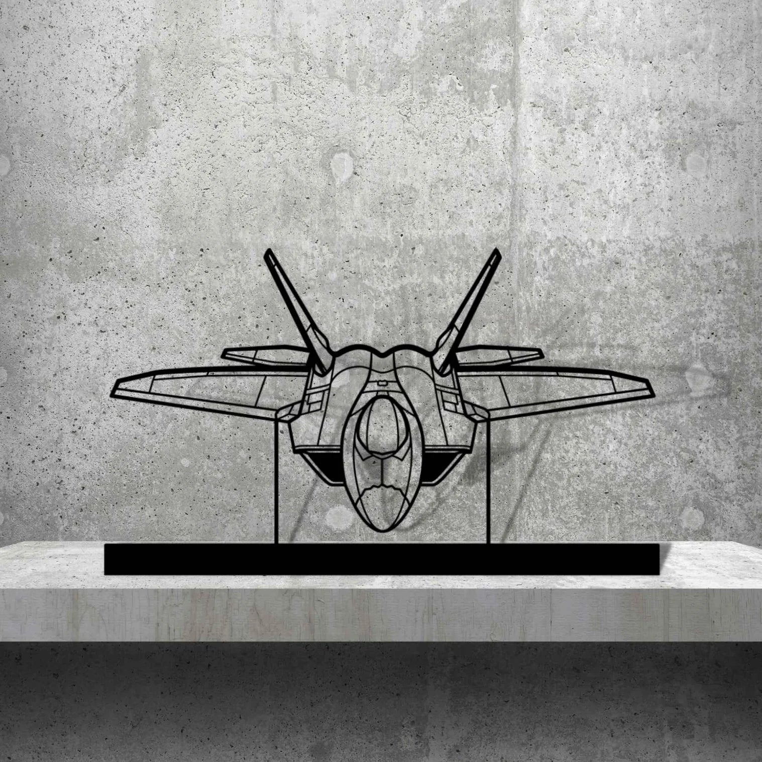 F-22 Raptor Angle Silhouette Metal Art Stand will give your hangar, office or room a unique look that will catch the attention of any aviation enthusiast and will add a subtle touch to your interior design.