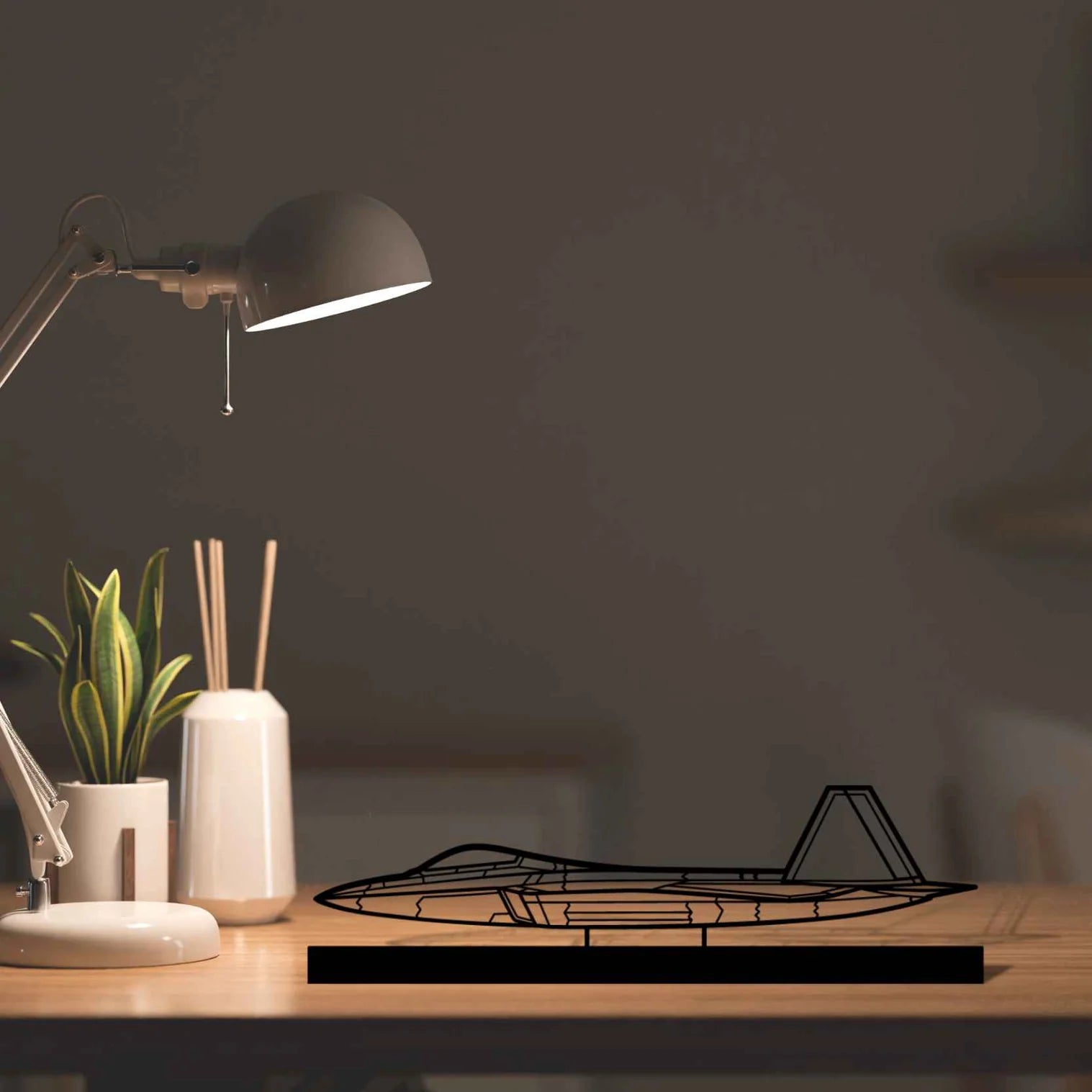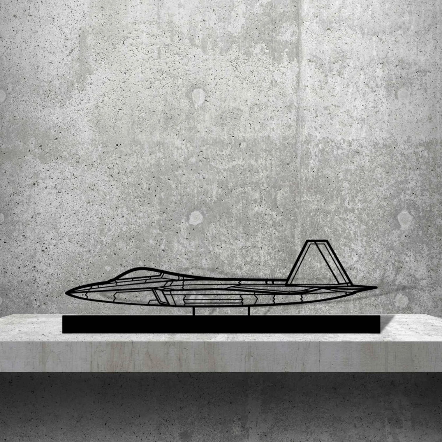 F-22 Raptor Silhouette Metal Art Stand will give your hangar, office or room a unique look that will catch the attention of any aviation enthusiast and will add a subtle touch to your interior design.