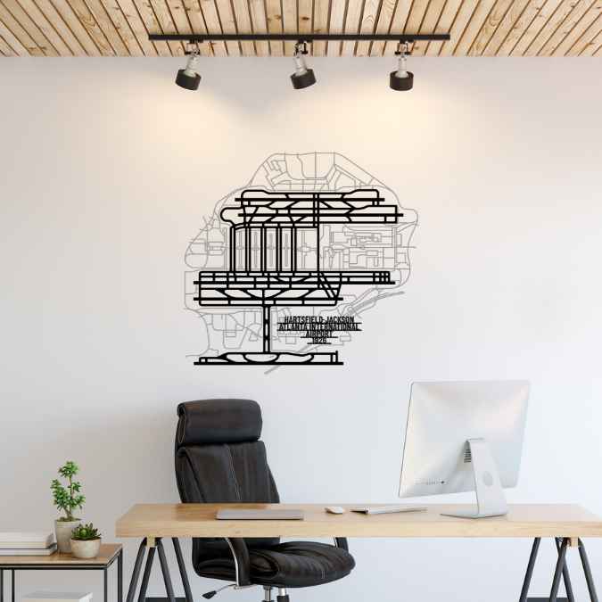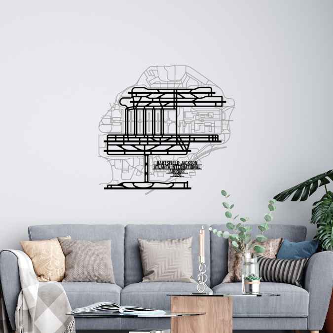 Hartsfield-Jackson Atlanta International Airport Metal Wall Art is our multilayer and multicolor 3-piece wall art. It includes the landing strips in our classic black finish and the surrounding area in a shiny and sparkly gray color. To top it off, we attach a metal plate, with the airport's name, and the construction date. This masterpiece alone or in combination with any of our other products will give your office, room, or garage a unique look that will catch the attention of any aviation enthusiast and will add a subtle touch of aviation spirit to your home's interior design.