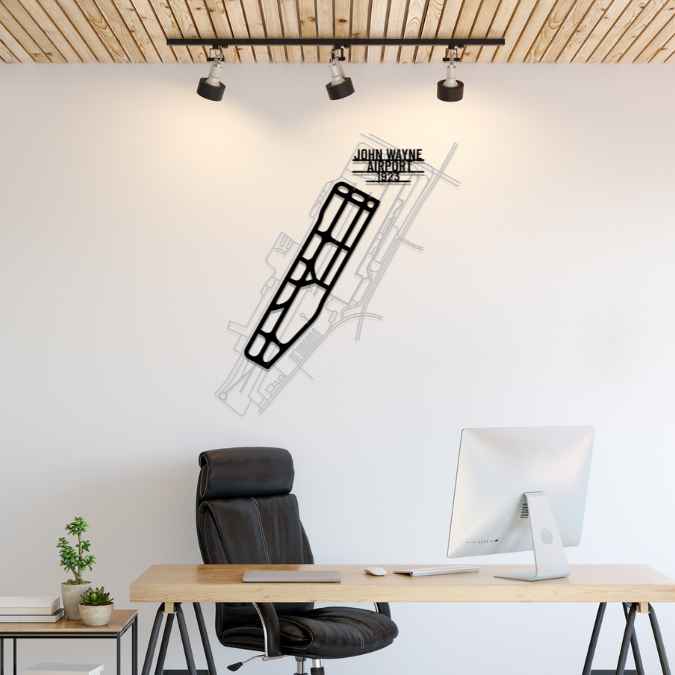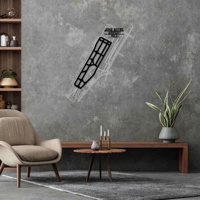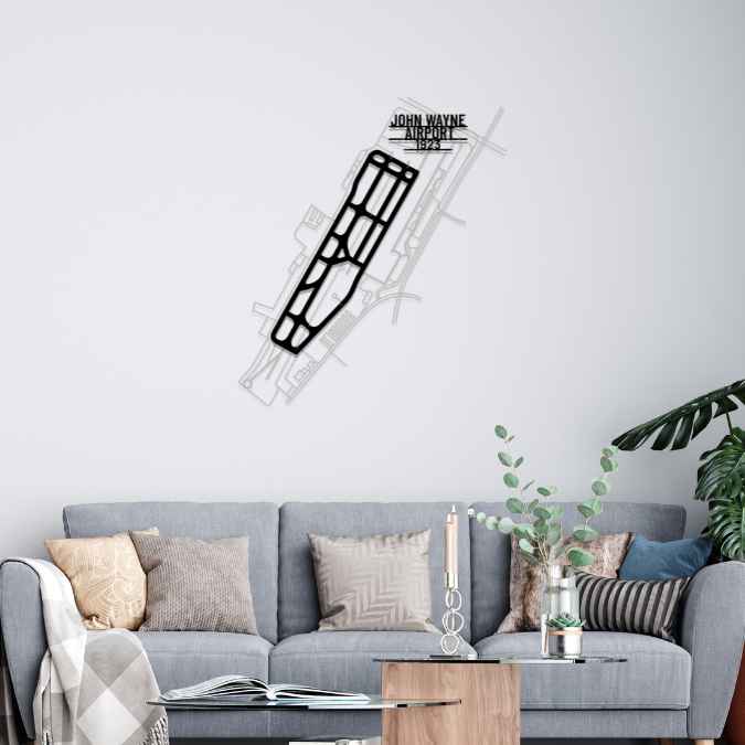 John Wayne Airport Metal Wall Art is our multilayer and multicolor 3-piece wall art. It includes the landing strips in our classic black finish and the surrounding area in a shiny and sparkly gray color. To top it off, we attach a metal plate, with the airport's name, and the construction date. This masterpiece alone or in combination with any of our other products will give your office, room, or garage a unique look that will catch the attention of any aviation enthusiast and will add a subtle touch of aviation spirit to your home's interior design.