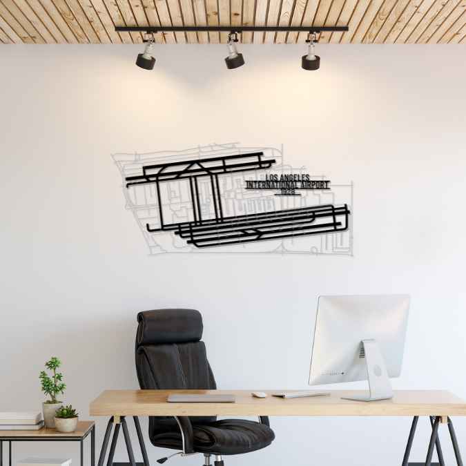 Los Angeles International Airport Metal Wall Art is our multilayer and multicolor 3-piece wall art. It includes the landing strips in our classic black finish and the surrounding area in a shiny and sparkly gray color. To top it off, we attach a metal plate, with the airport's name, and the construction date. This masterpiece alone or in combination with any of our other products will give your office, room, or garage a unique look that will catch the attention of any aviation enthusiast and will add a subtle touch of aviation spirit to your home's interior design.