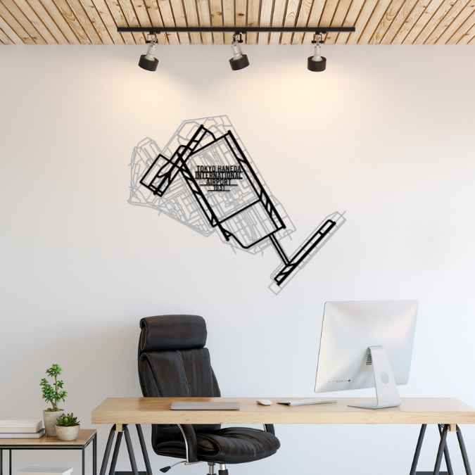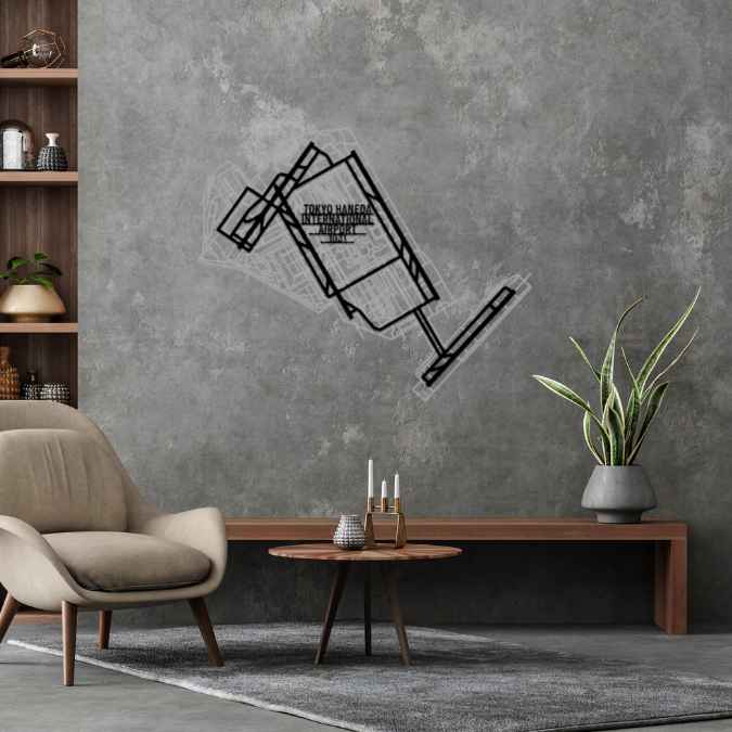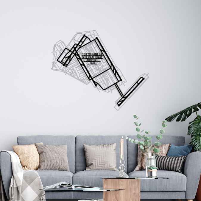 Tokyo Haneda International Airport Metal Wall Art is our multilayer and multicolor 3-piece wall art. It includes the landing strips in our classic black finish and the surrounding area in a shiny and sparkly gray color. To top it off, we attach a metal plate, with the airport's name, and the construction date. This masterpiece alone or in combination with any of our other products will give your office, room, or garage a unique look that will catch the attention of any aviation enthusiast and will add a subtle touch of aviation spirit to your home's interior design.